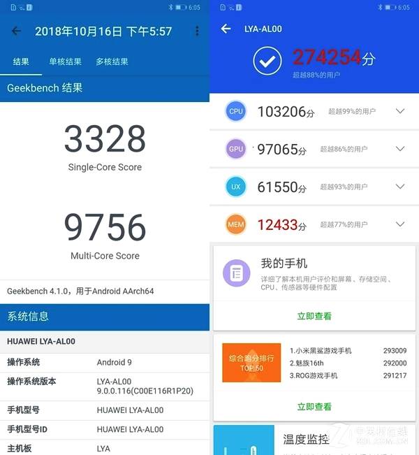 Mate 20 Pro跑分(安兔兔似乎低于Mate20平均分 可能是工程機的原因)