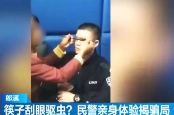 中國民間有一種延續(xù)了上百年的“筷子刮眼抓蟲”戲法,算得上是麻字門入門級騙局。此局中,騙子會說人眼中有寄生蟲,再用兩根筷子夾住“患者”眼瞼刮弄,便會真有“蟲子”出來,唬的圍觀者紛紛掏錢驅蟲。